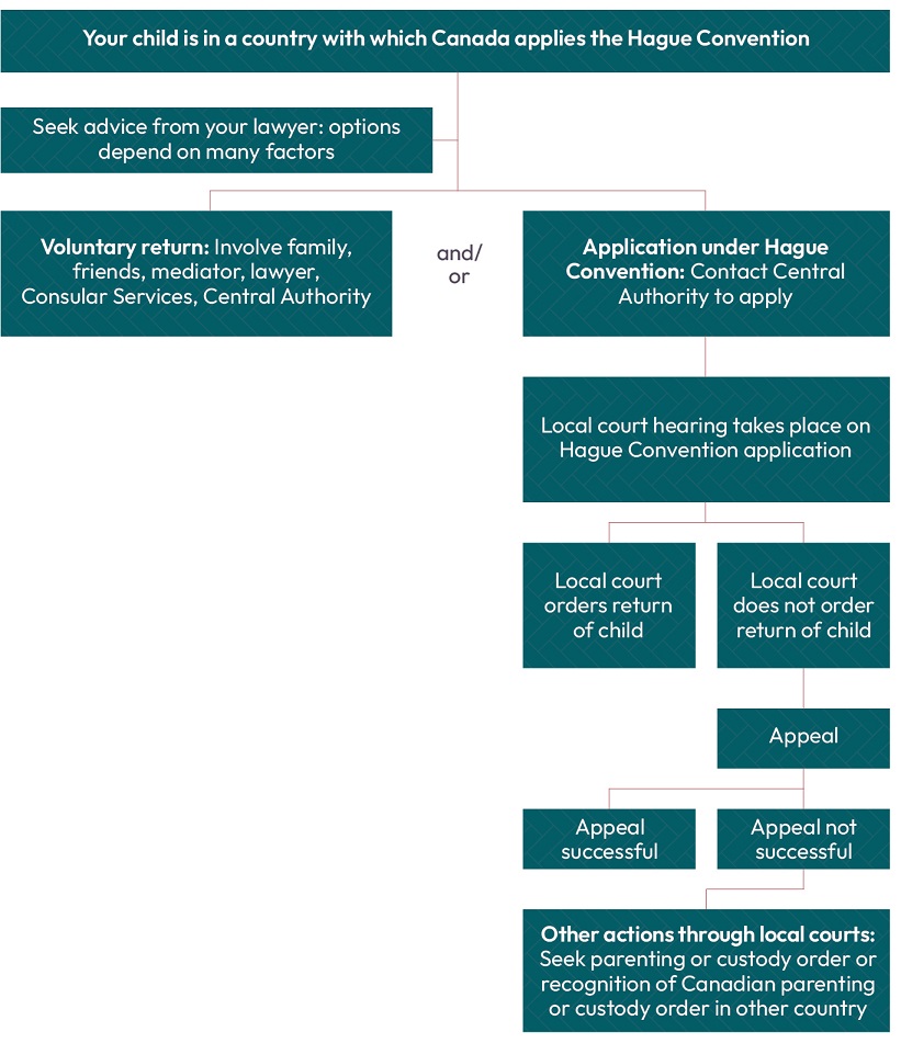 - the Hague Convention on the Civil Aspects of International Child Abduction (referred to in this guidebook as the Hague Convention) will apply if they take the child to, or keep them in, a country with which Canada applies the convention.